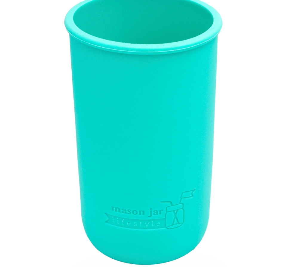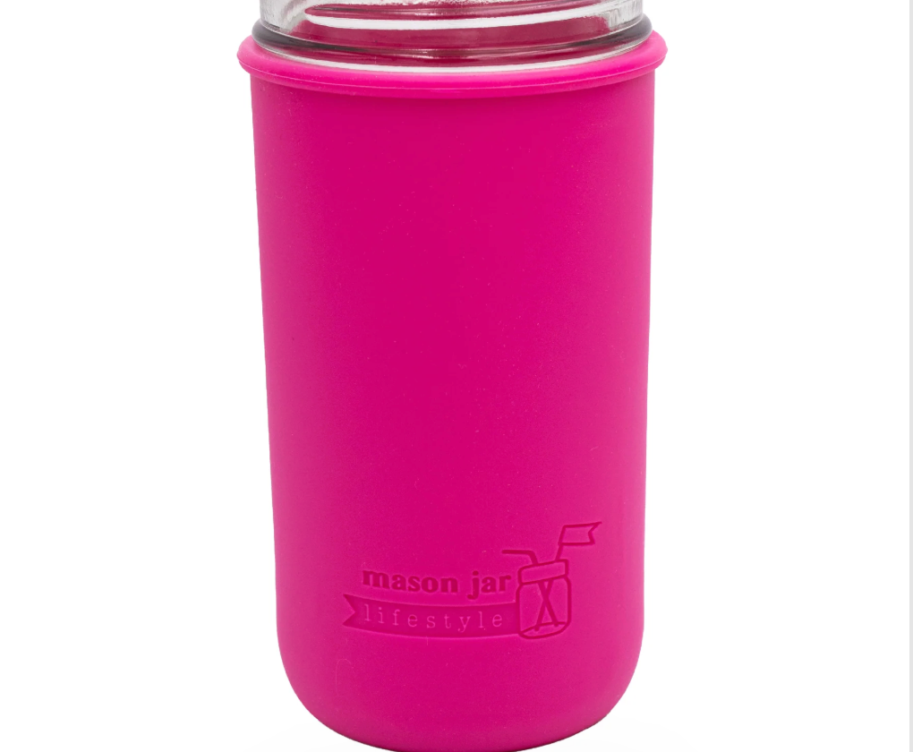 These silicone sleeves for wide mouth Pint & Half (24oz) Mason jars add grip and padding, and they also insulate.